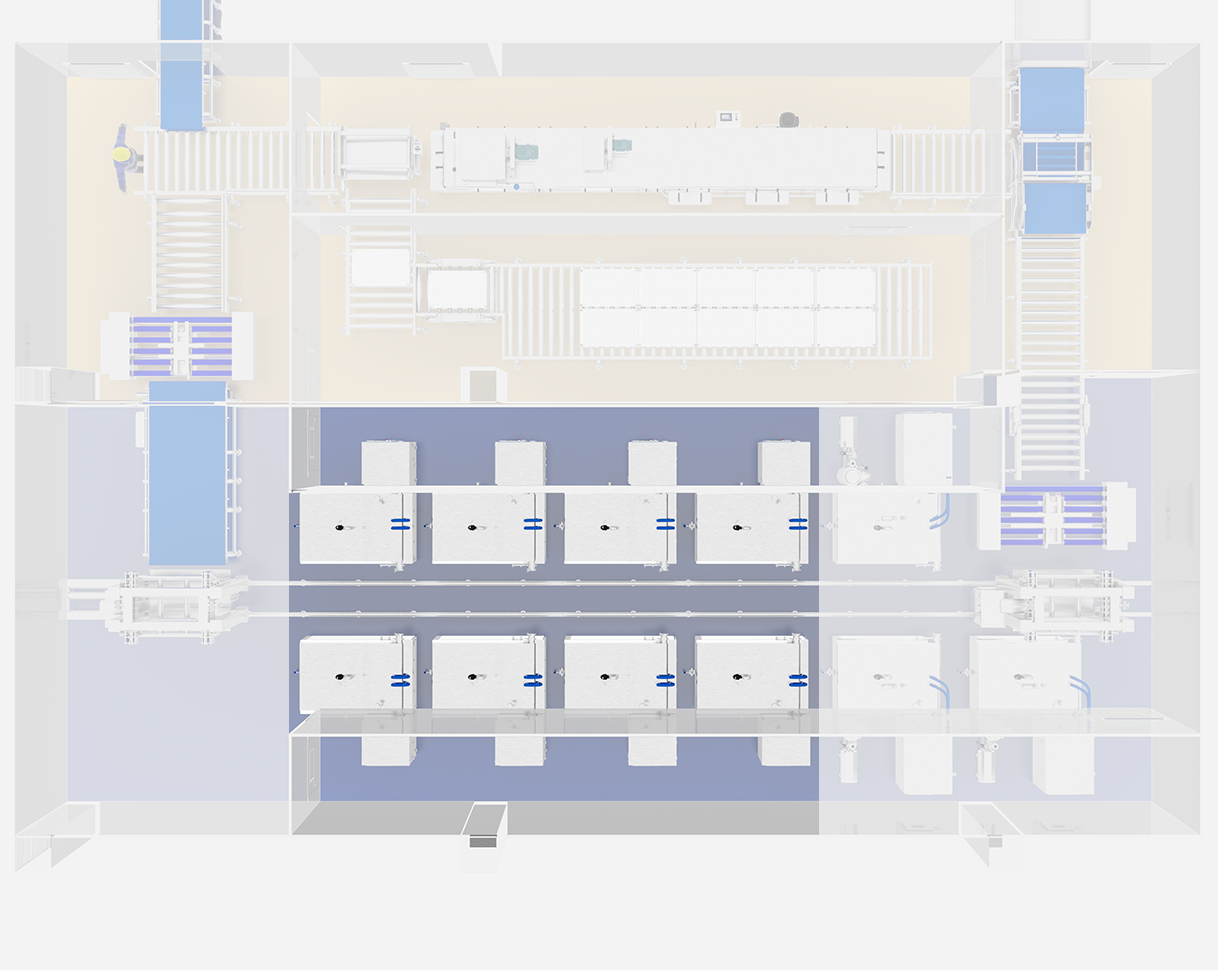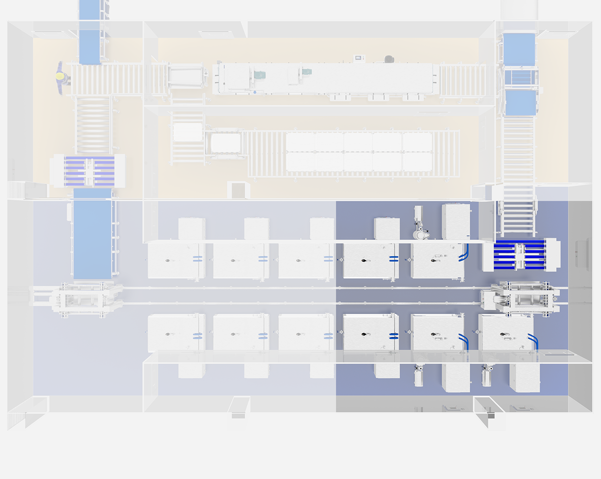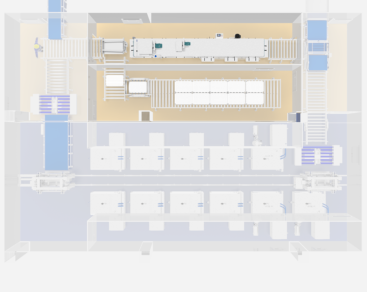 Für die Stapelproduktion von Zongzi. Integriert mehrere Funktionen wie Befüllen von Körben, Wiegen, Transport, Kochen, Abkühlen und Reinigen der Körbe in einen vollautomatisierten Prozess.