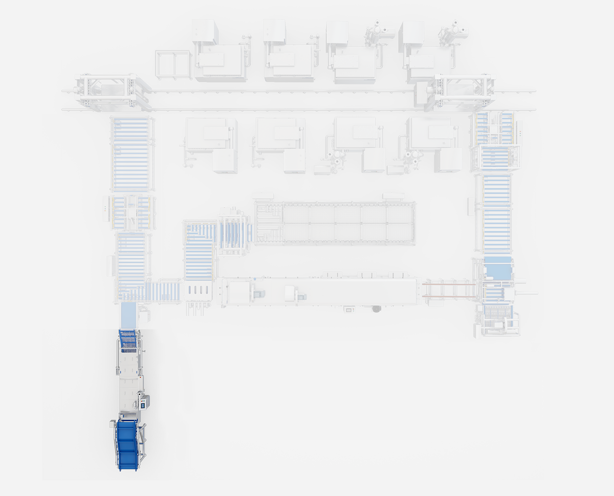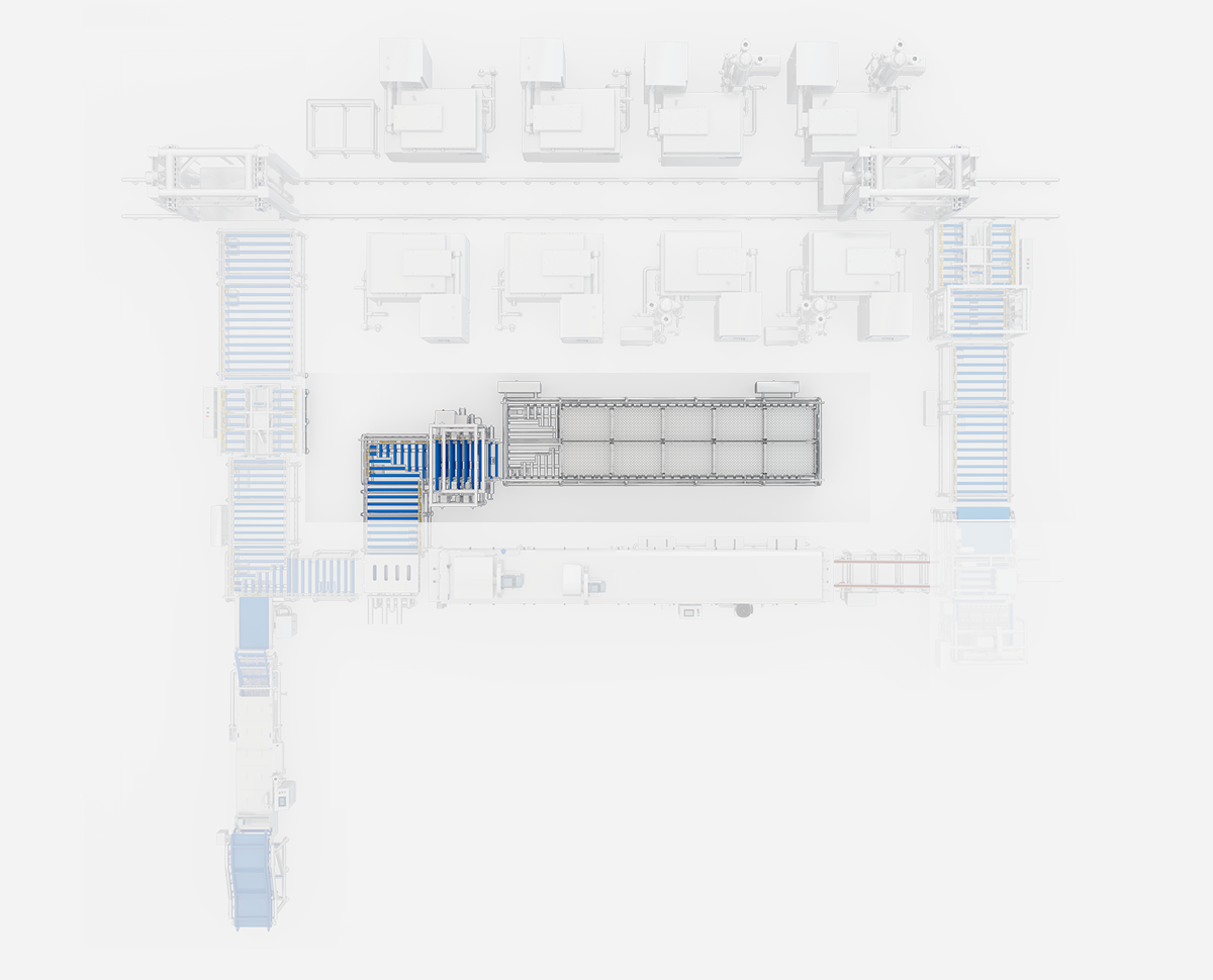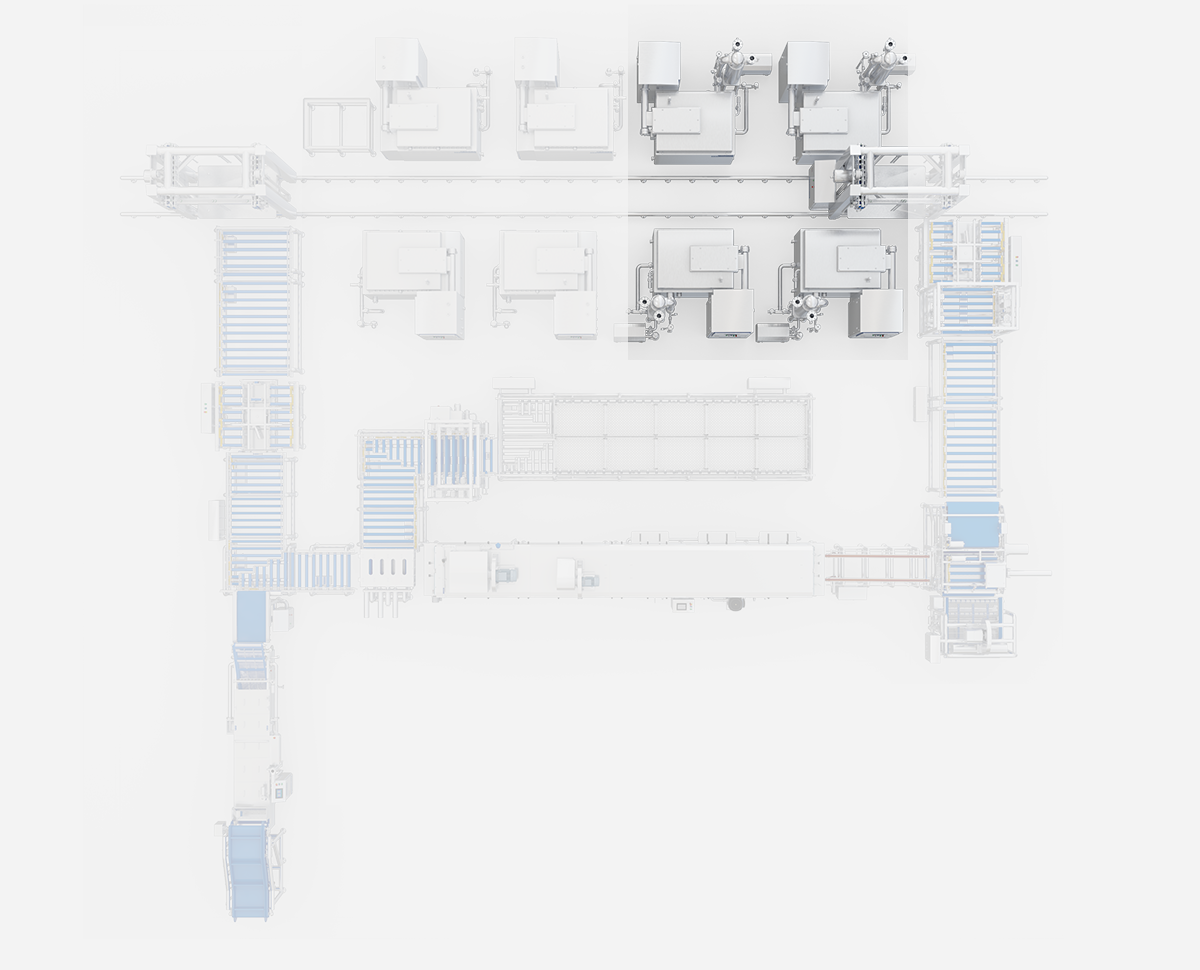 Wird für die Chargenfertigung von geräucherten Entenköpfen verwendet. Transport, thermische Bearbeitung, Abkühlung und Reinigung der Behälter werden durch ein einheitliches Programm koordiniert; die automatisierte Produktion entfällt auf manuelle Arbeit.